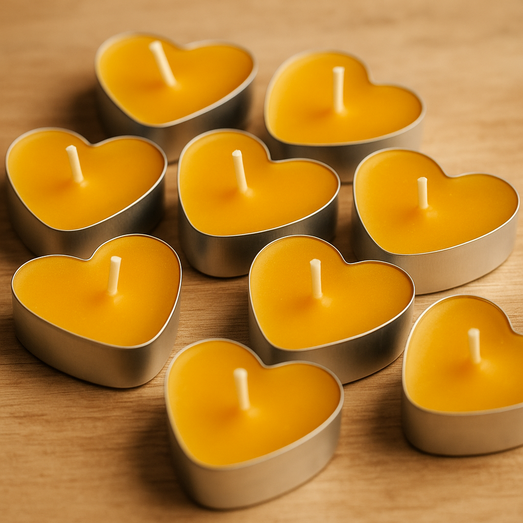 Svíčka z čistého včelího vosku ve tvaru srdíčka 💛 ručně vyráběná, voní po medu a slunci. 🐝 Cena: 99 Kč / ks